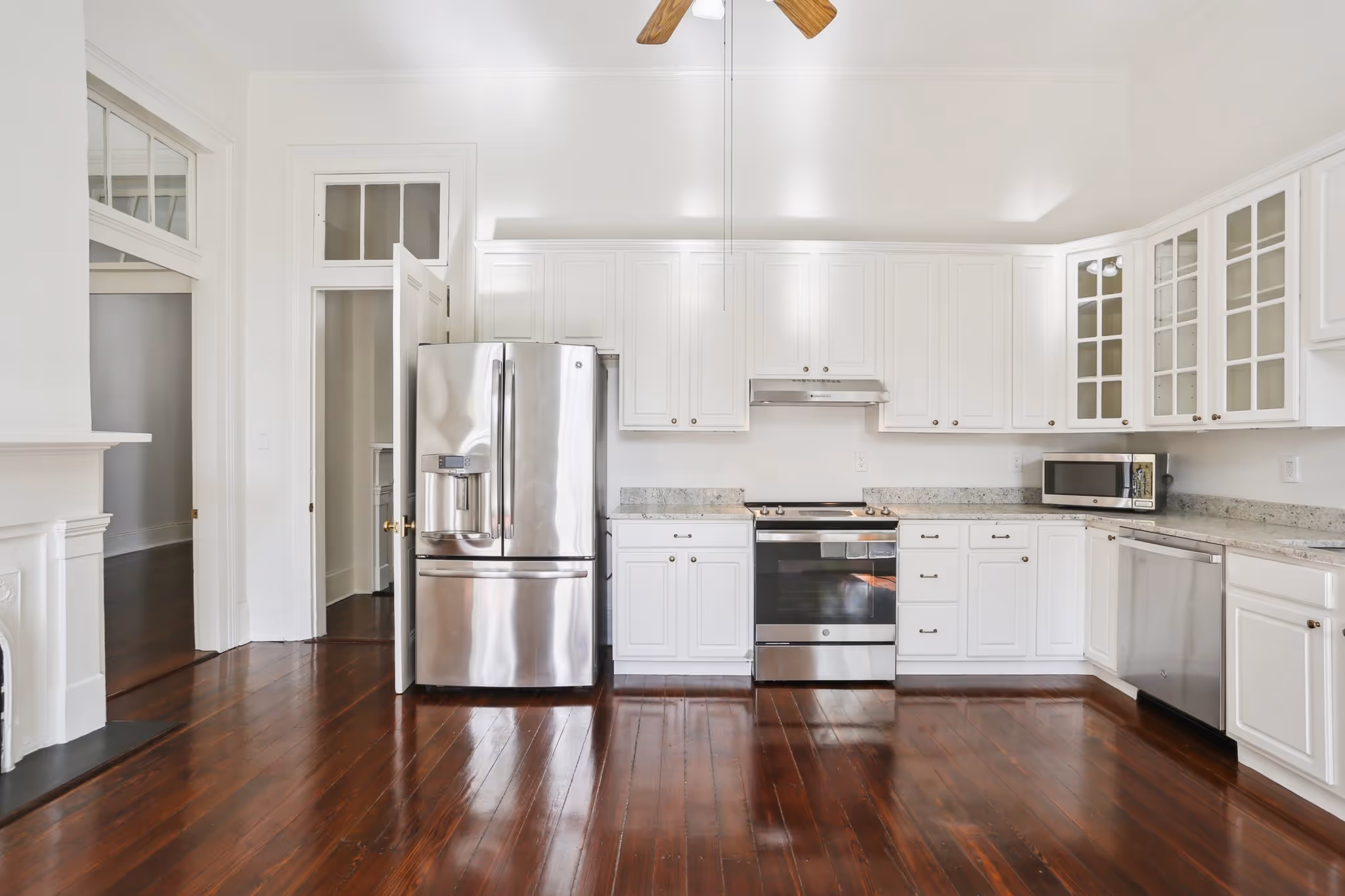 Live the quintessential French Quarter lifestyle via this freshly renovated 2 bedroom 2 bath, 1st floor unit, w/ utilities included. This classic double gallery greek revival is located in a prime, central section of the Quarter - quietly residential yet conveniently close to all the action. Beautifully adorned w/ architectural details - crown moldings, medallions, fireplaces, wood floors, and pocket doors, the grand, double parlor living room looks out to Royal St, while the spacious kitchen and primary bedroom both lead directly out to the covered back porch and new brick courtyard. All new appliances, bathrooms, HVAC, paint, sanded/stained floors, and more!Dining room could be 3rd bedroom if needed. Carriage house at back of courtyard is also available for lease, and can be combined with the lease of 1010 Royal